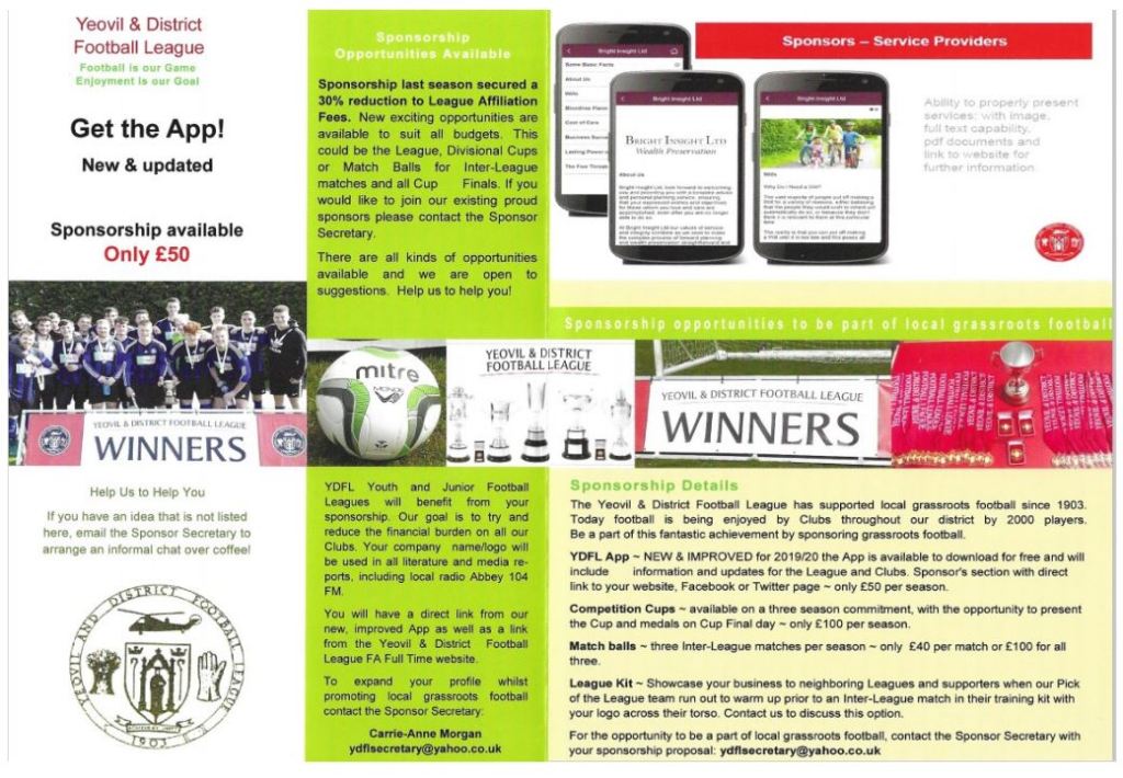 Over 2000 downloads to date! Contact us today to discuss available opportunities: hello@yeovildistrictfootballleague.org